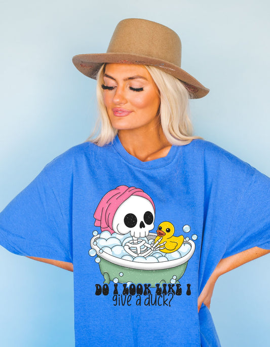 Sassy Skele-Quack Attitude Cotton Tee: Do I Look Like I Give a Duck?